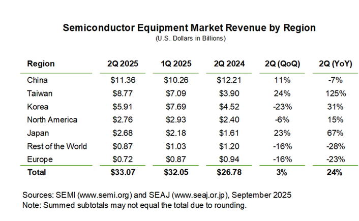 2025年第2四半期の世界半導体製造装置販売額は前年同期比24%増 |
