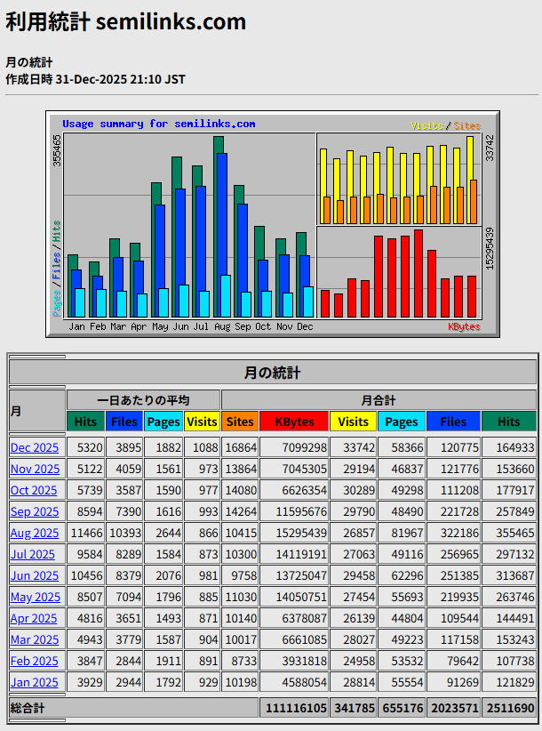| 日ごとの統計 January 2026 |